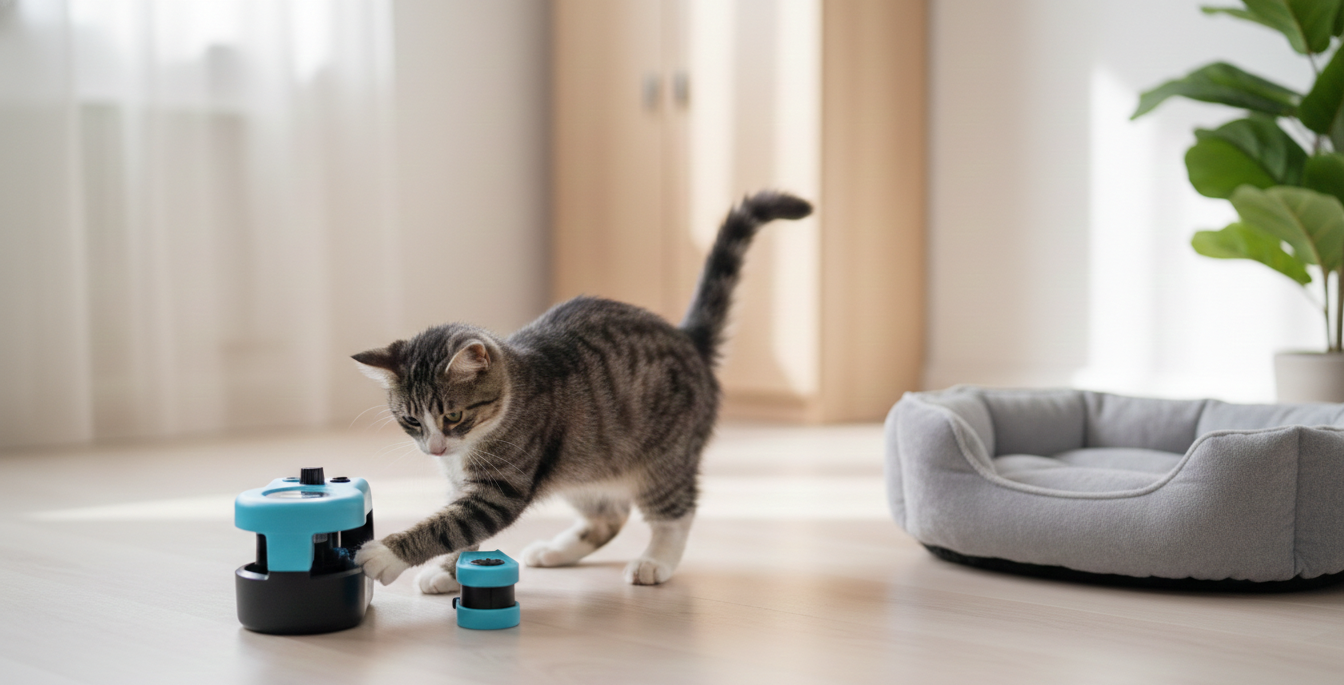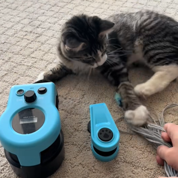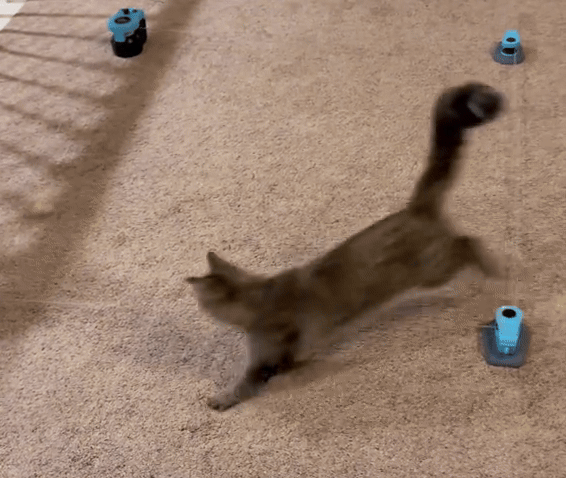 Este juguete automático crea movimientos impredecibles que despiertan el instinto natural de juego y persecución en perros y gatos
